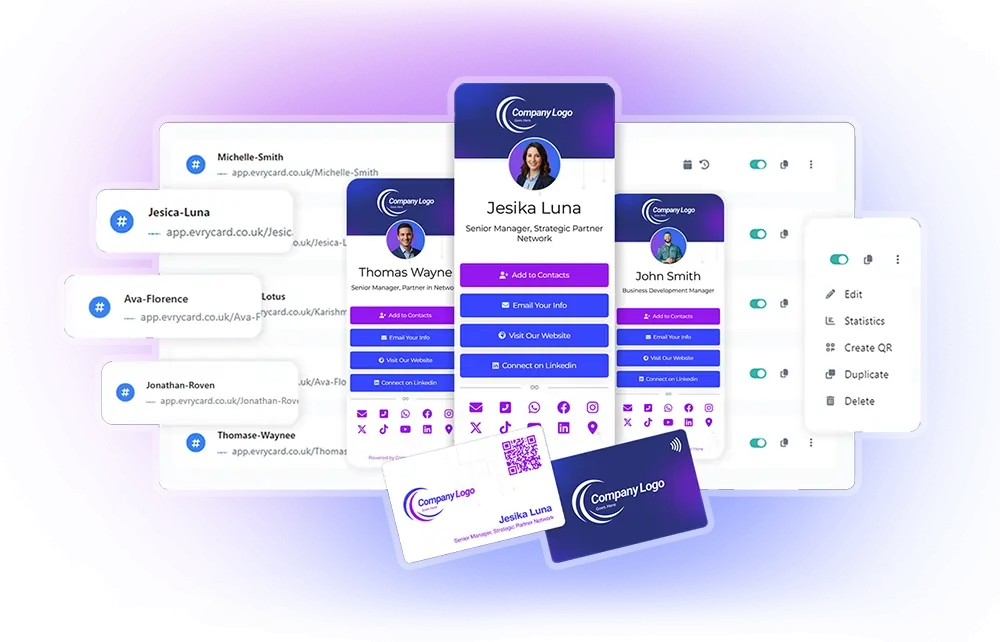 With Evrycard Digital Business Cards for Teams, businesses can: