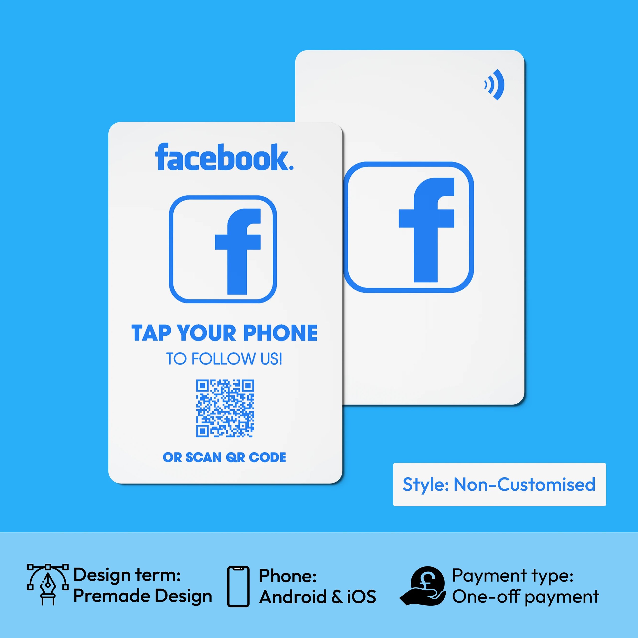 Simplify how you grow your Facebook audience with Facebook NFC Card. With a single tap, users can instantly connect to your personal or business Facebook pageโno apps necessary!
