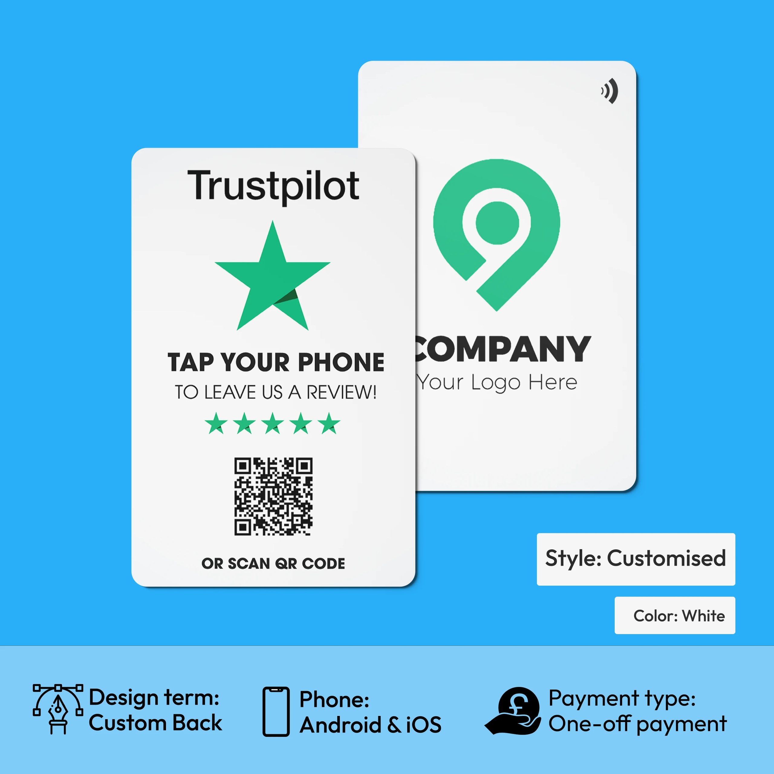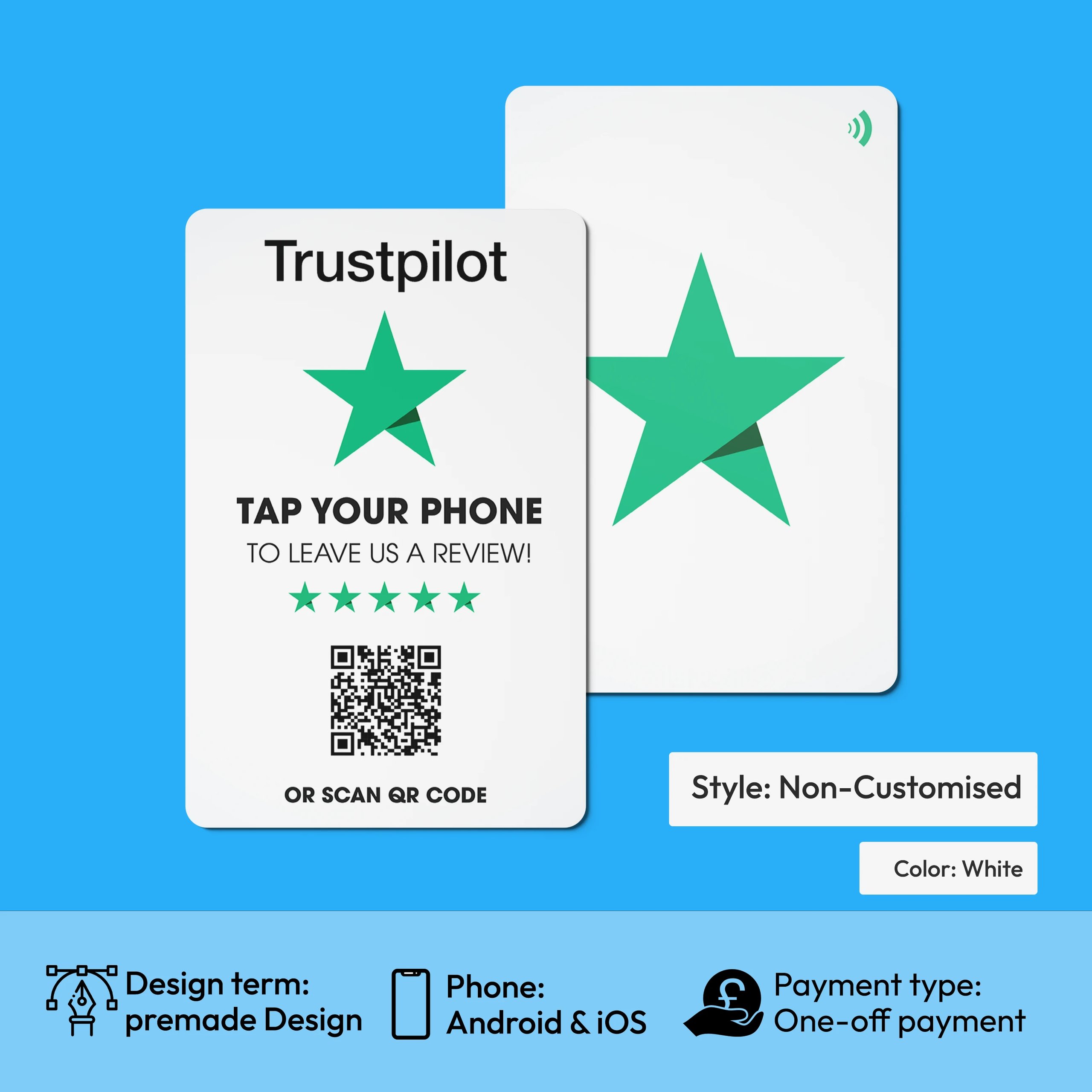 Collect Trustpilot reviews simply with the Evrycard Trustpilot Review NFC Card. A single tap directs customers to leave a review on your Trustpilot page—no app required!